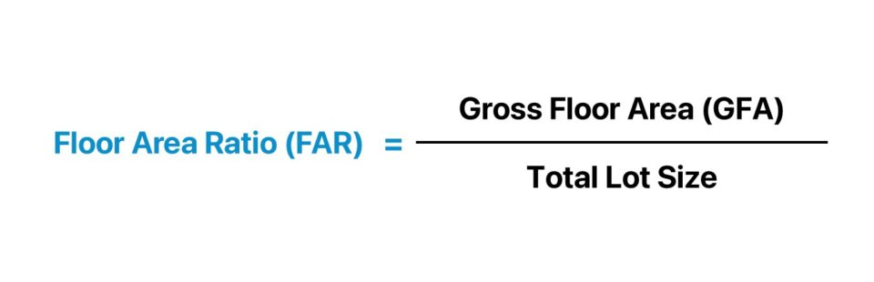 FAR = Total Gross Floor Area of Building. Total Area of the Lot